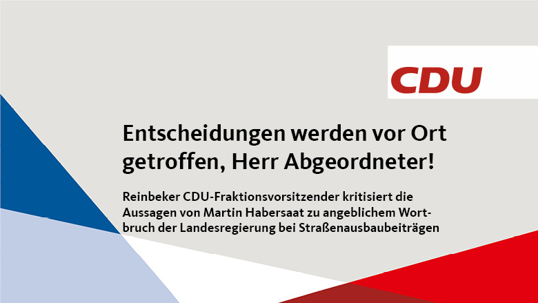 Anlässlich der jüngsten Äußerungen des SPD-Landtagsabgeordneten Martin Habersaat erklärt der Fraktionsvorsitzende der Reinbeker CDU, Patrick Ziebke: