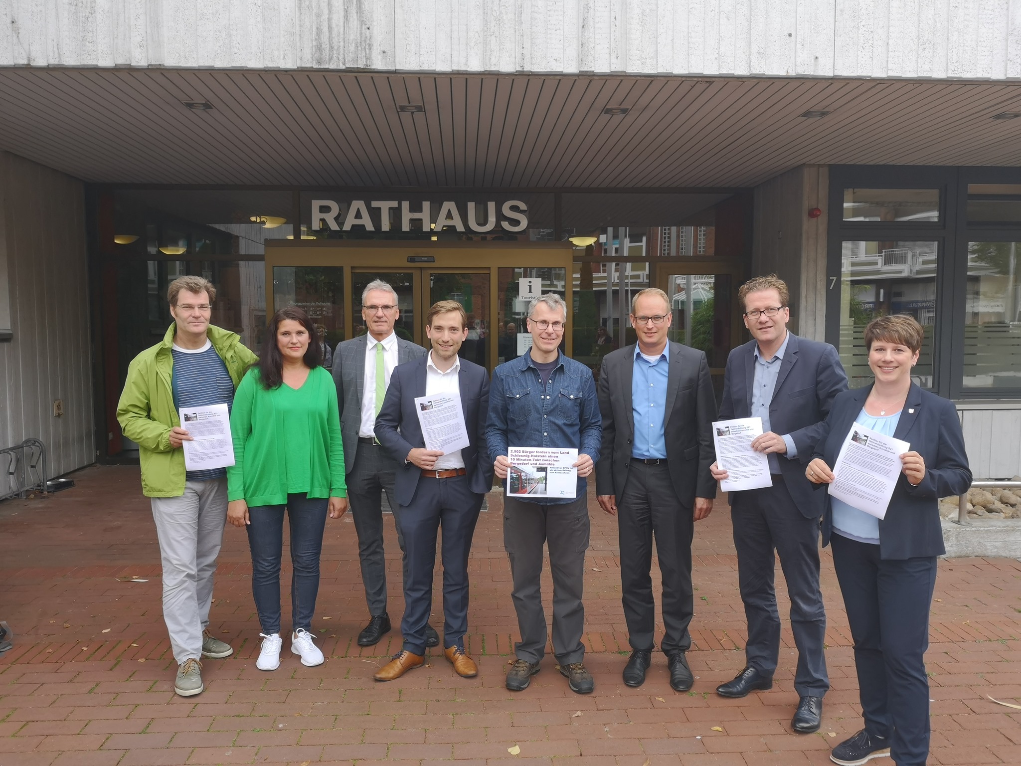 „Wir kämpfen seit einiger Zeit für einen besseren Takt in Reinbek, Wohltorf und Aumühle“, so die beiden Landtagsabgeordneten Andrea Tschacher und Lukas Kilian zur Übergabe der Petition.